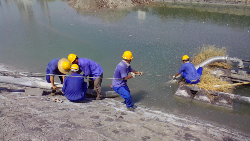 為配合磷石膏堆場(chǎng)南部淋溶水環(huán)境整治項(xiàng)目的施工,8月11日上午,z6mg人生就是博化工公司供水車(chē)間維修班員工頂著烈日、耐住高溫,順利完成了淋溶水泵一段近五十米管道的遷移工作。圖為供水車(chē)間人員正在進(jìn)行淋溶水管道的連接工作。