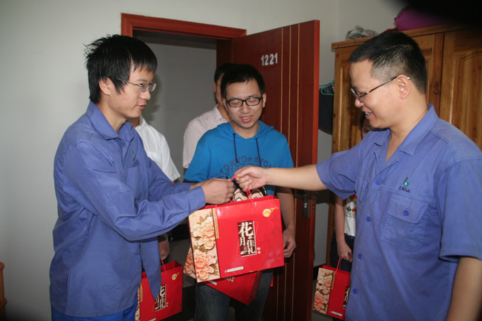 中秋佳節來臨之際,安徽z6mg人生就是博化工股份有限公司黨團組織負責人來到該公司單身青年公寓,為青年員工送去企業的關愛和節日的祝福,將香甜的月餅送到一百六十多名青年員工的手中。