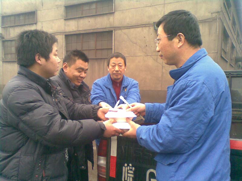 圖一:停電期間,近三十輛外地液氨槽罐車,?吭詮耷導浼巴勐分付ǖ氐,等待公司供電恢復后按序卸氨。供應二公司采購業務員于20日中午、傍晚,為液氨槽罐車司機和押運員們送去了熱飯菜和礦泉水。